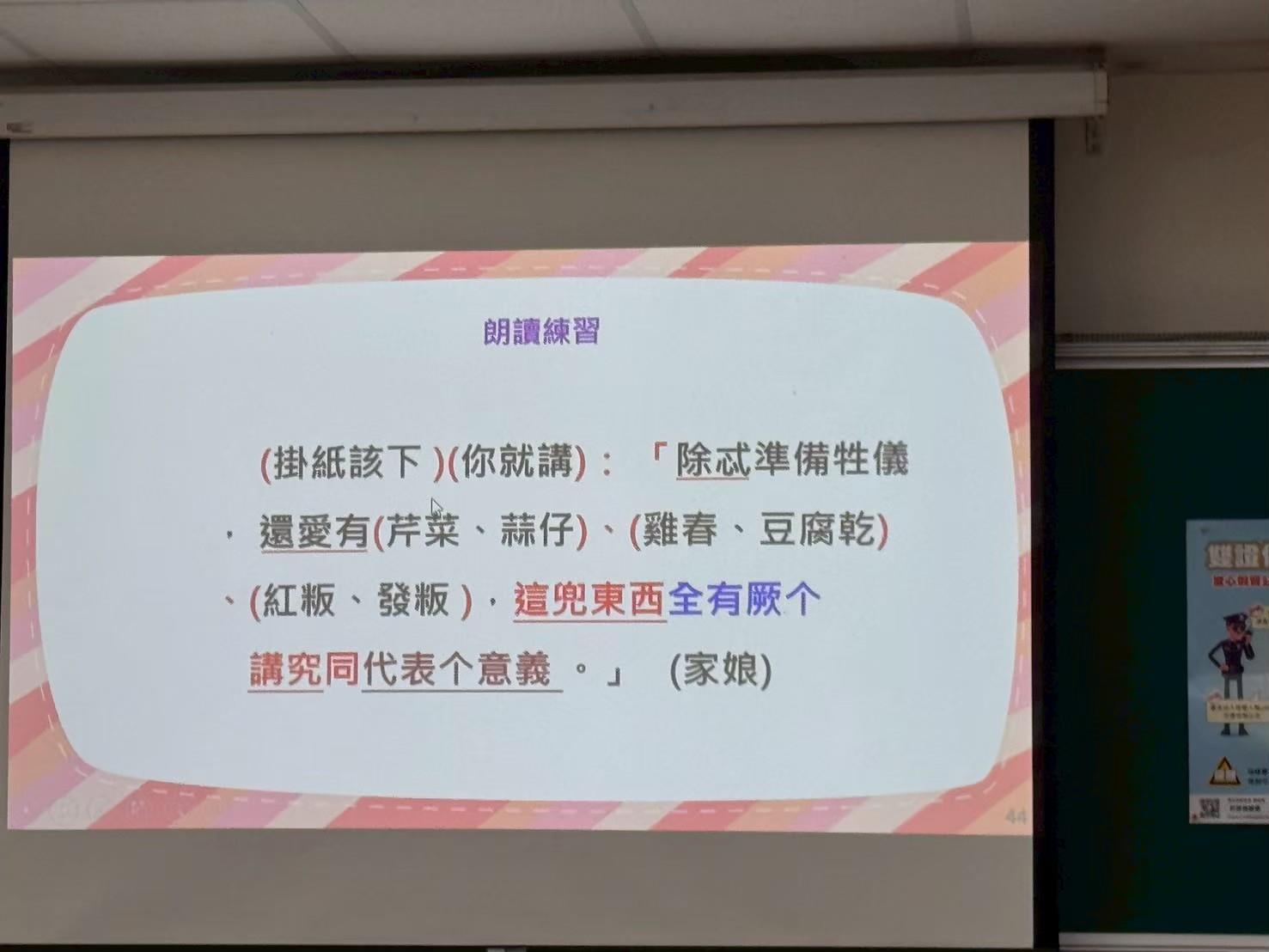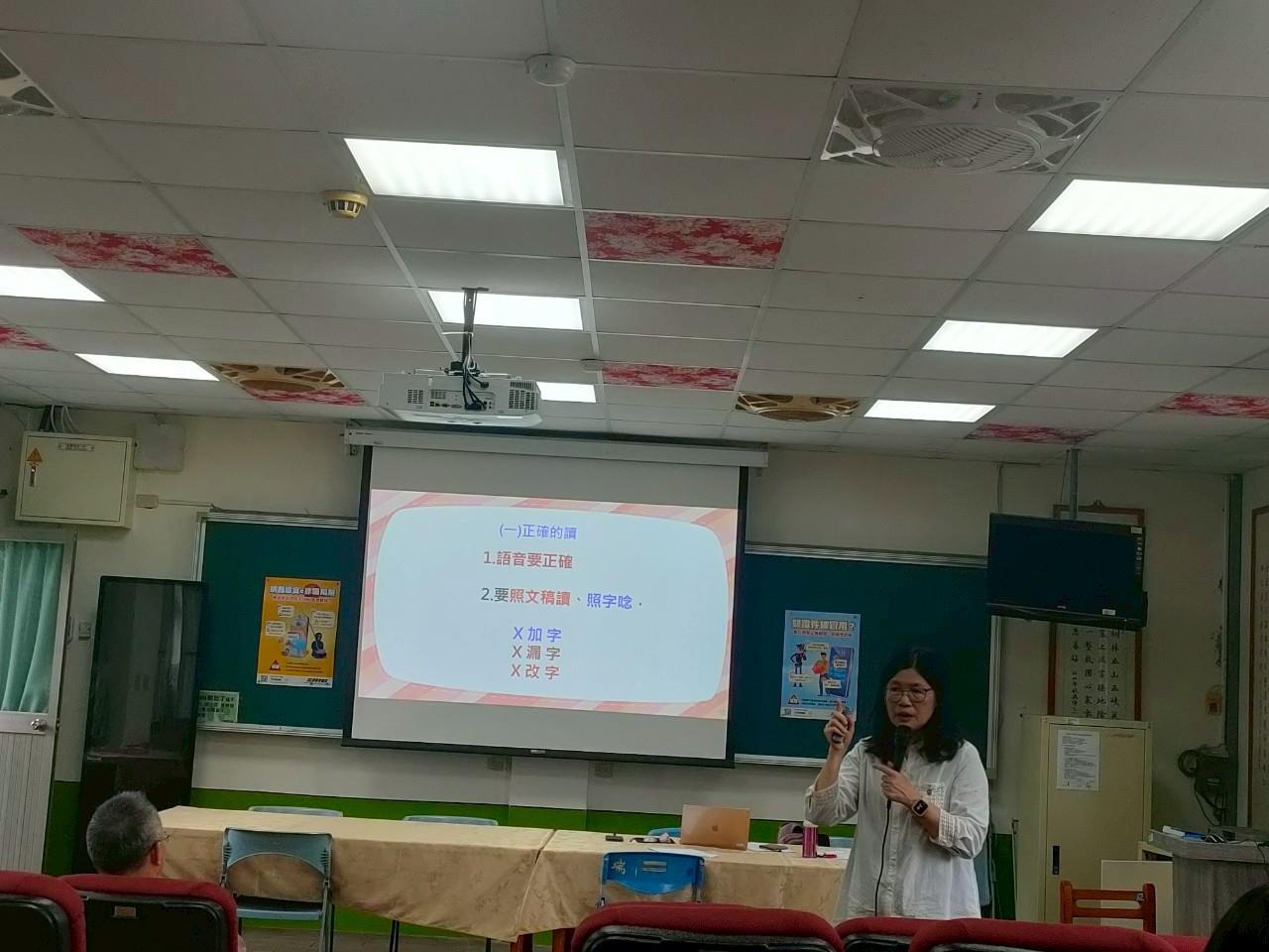 講師帶唸於朗讀時,四線和海陸腔容易疏失的字音。對於語音,語調,甚至表情運用於各種文稿的講授,也有生動的介紹。收穫豐富,謝謝